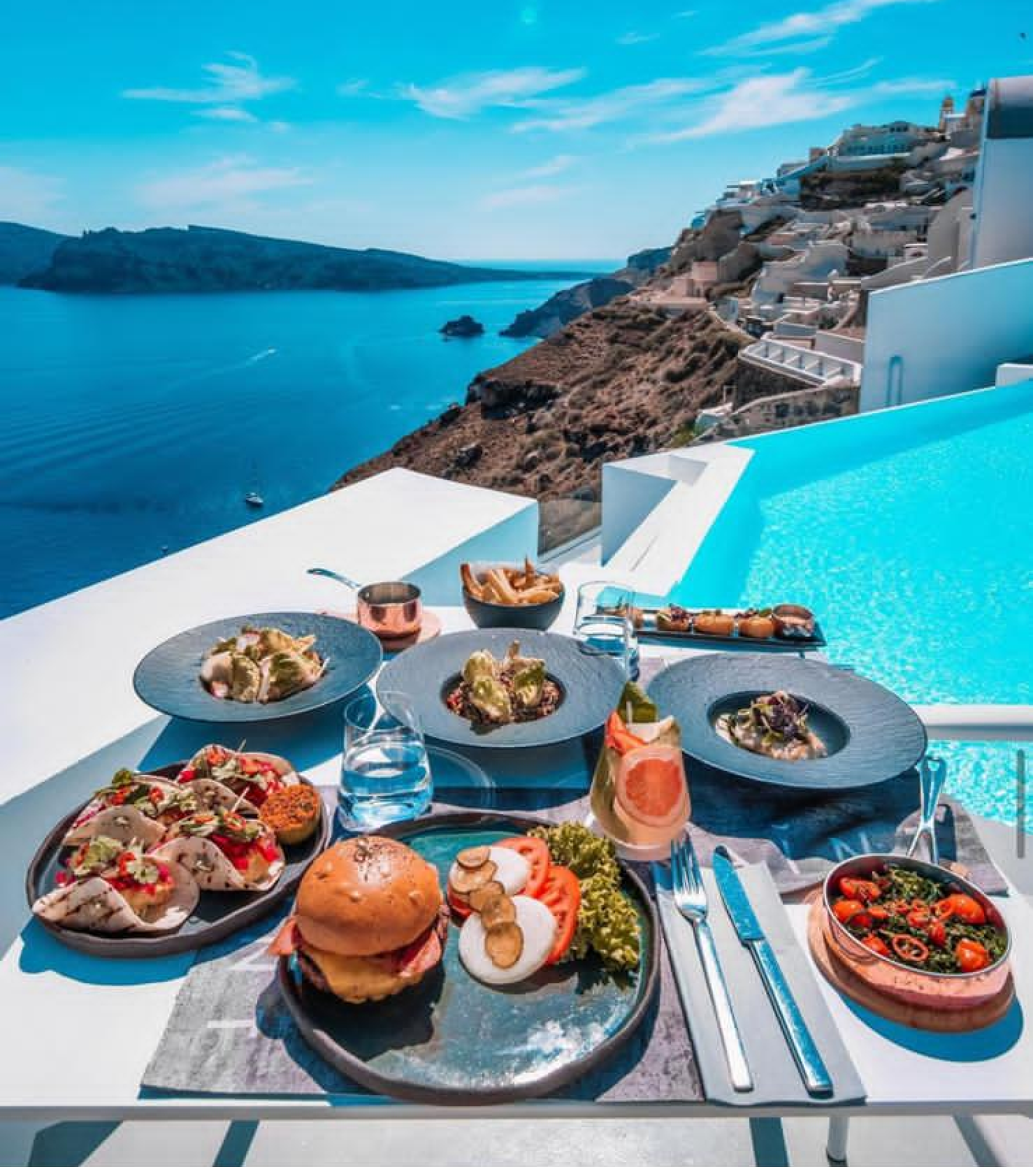 Start your day with a blissful brunch at Saint Trinity, high on the cliffs of Oia, Santorini. Morning light illuminates the Caldera and our infinity pool, creating a serene setting. Our brunch menu blends fresh local ingredients with international tastes. Whether with friends or on your own, enjoy a dreamy brunch with Santorini's beautiful vistas as your backdrop.